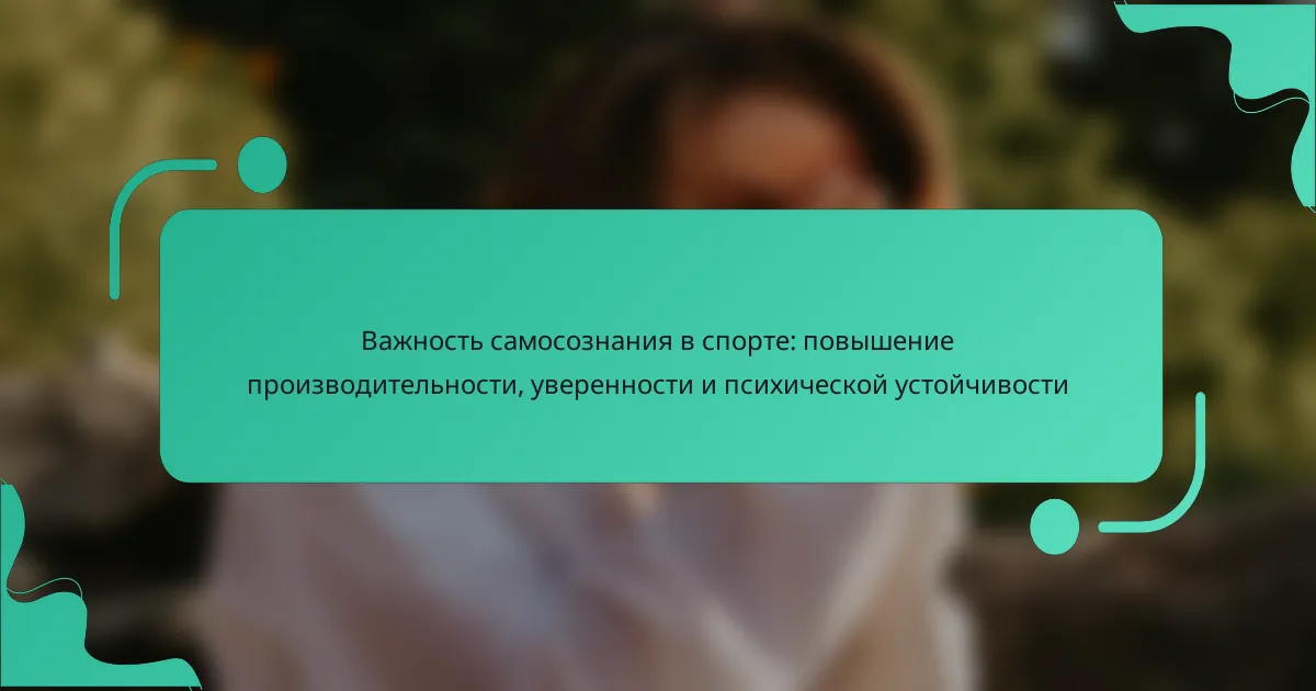 Развитие самосознания у спортсменов улучшает производительность, уверенность и психическую устойчивость. Ключевые практики включают регулярный самоанализ, постановку конкретных целей, получение обратной связи и тренировки внимательности.